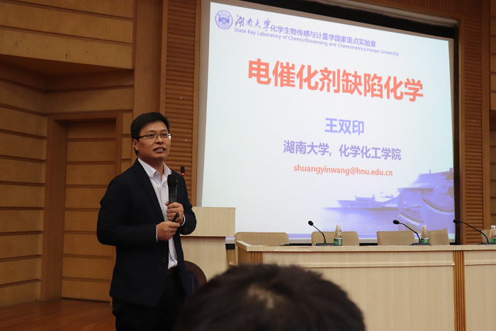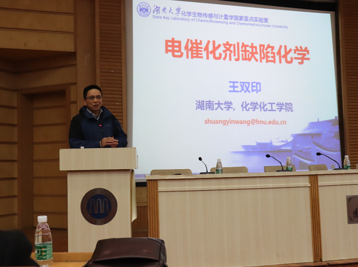 2018年11月11日下午,应杨秀康副教授与王先友教授共同邀请,湖南大学王双印教授来到我校进行学术交流,并以“电催化剂缺陷化学”为题作了一场令人收获丰厚的学术报告。报告由伟德BETVLCTOR化学院副院长裴勇教授主持,伟德BETVLCTOR师生积极参与。