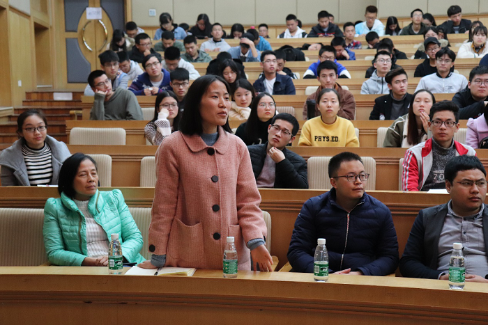 王双印教授,国家杰出青年基金获得者,现为湖南大学化学化工学院教授,博士生导师。2006年本科毕业于浙江大学化工系,2010年在新加坡南洋理工大学获得博士学位,随后在美国凯斯西储大学,德克萨斯大学奥斯汀分校、英国曼彻斯特大学(玛丽居里学者)开展研究工作。主要研究方向为电催化剂的表面调控。目前,已在国际著名期刊Nature Communications, JACS, Angew. Chem, Advanced Materials等发表学术论文100余篇,总引用7000余次,h-index为45。王双印教授按照“理解缺陷”、“构筑缺陷”、“利用缺陷”的逻辑框架深入浅出的为我们阐述了电催化剂缺陷化学的研究路线,并用一些经典的实例和丰富的数据,为我们讲述了“碳本征缺陷电催化”、“金属氧化物本征缺陷可控构筑”、“原子功能化修饰缺陷位”的研究工作与进展。其内容丰富多彩,引发了在座师生的热烈讨论。