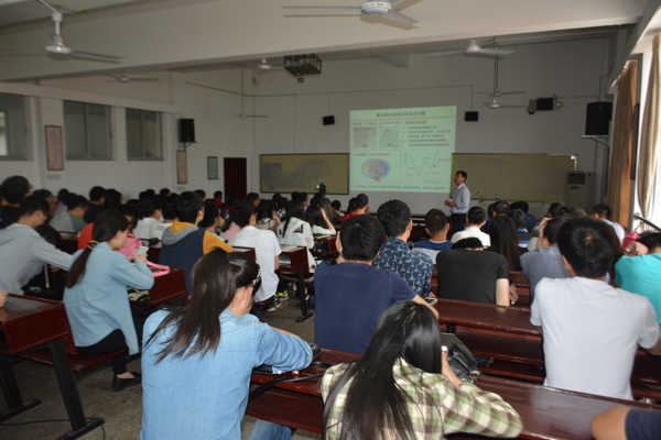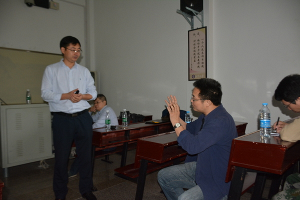 朱锦涛教授以“聚合物/无机纳米粒子在受限空间中的组装性能”为题,从研究背景、共聚物的3D受限组装、无机粒子的受限组装和总结与致谢四个方面,详细的讲解分子自组装相关知识。朱锦涛教授把超分子组装与受阻组装相结合,构建新颖内部结构的聚合物纳米粒,通过解组装的方式得到具有规整介孔结构的纳米粒和纳米体;通过超分子受阻效应,可实现纳米棒的有序排列,得到超晶格结构;纳米棒粒间距、组装层数及机械性能等可通过调节超分子及表面聚合物配体的性质进行调控。会后,师生互动, 朱锦涛教授用专业的知识一一解答同学的问题。(照片由张俊提供)