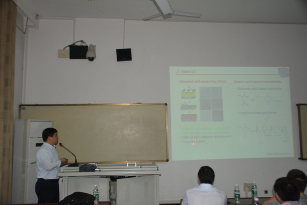 季生象教授从活性聚合、纤维素化学、嵌段共聚物、生物聚酯等方面,详细的讲解微结构功能高分子的相关知识。杨荣华教授主要围绕6-硝基螺吡喃展开报告,他以6-硝基螺吡喃为结构单元,历经14年设计合成了12种螺吡喃类似物,实现了对金属离子、阴离子、中性分子、氨基酸、蛋白质等物质的光学和电化学传感等,还针对三链DNA分子开关(TMS)进行了相关的讲解。最后的现场提问环节,气氛活跃。(照片由周黄山提供)