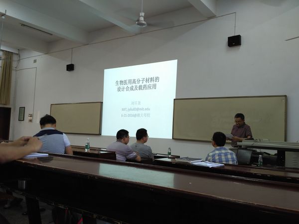 6月21日上午,麻省理工学院Koch研究所刘尽尧博士应邀在逸夫楼一阶教室为伟德BETVLCTOR师生作了题为:“生物应用高分子设计合成及载药应用”的学术报告,报告由伟德BETVLCTOR,伟德BV官网副院长黎华明教授主持,伟德BETVLCTOR赵斌、肖启振、谢鹤楼、陈华杰、吴萍、刘益江、阳梅等老师与部分学生参加。