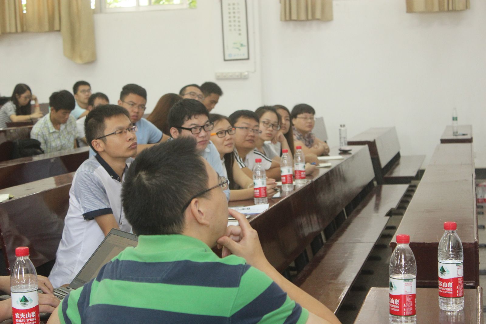 武晓军教授讲授主题为“Two Dimensional Materials with Tunable Electronics Band Structures for Photocatalysis”。首先以光合作用为背景引出光解水,接着重介绍了光解水中用到的两种新型的具有可调谐电子能带结构的光催化二维半导体材料。(刘洋坪提供照片)