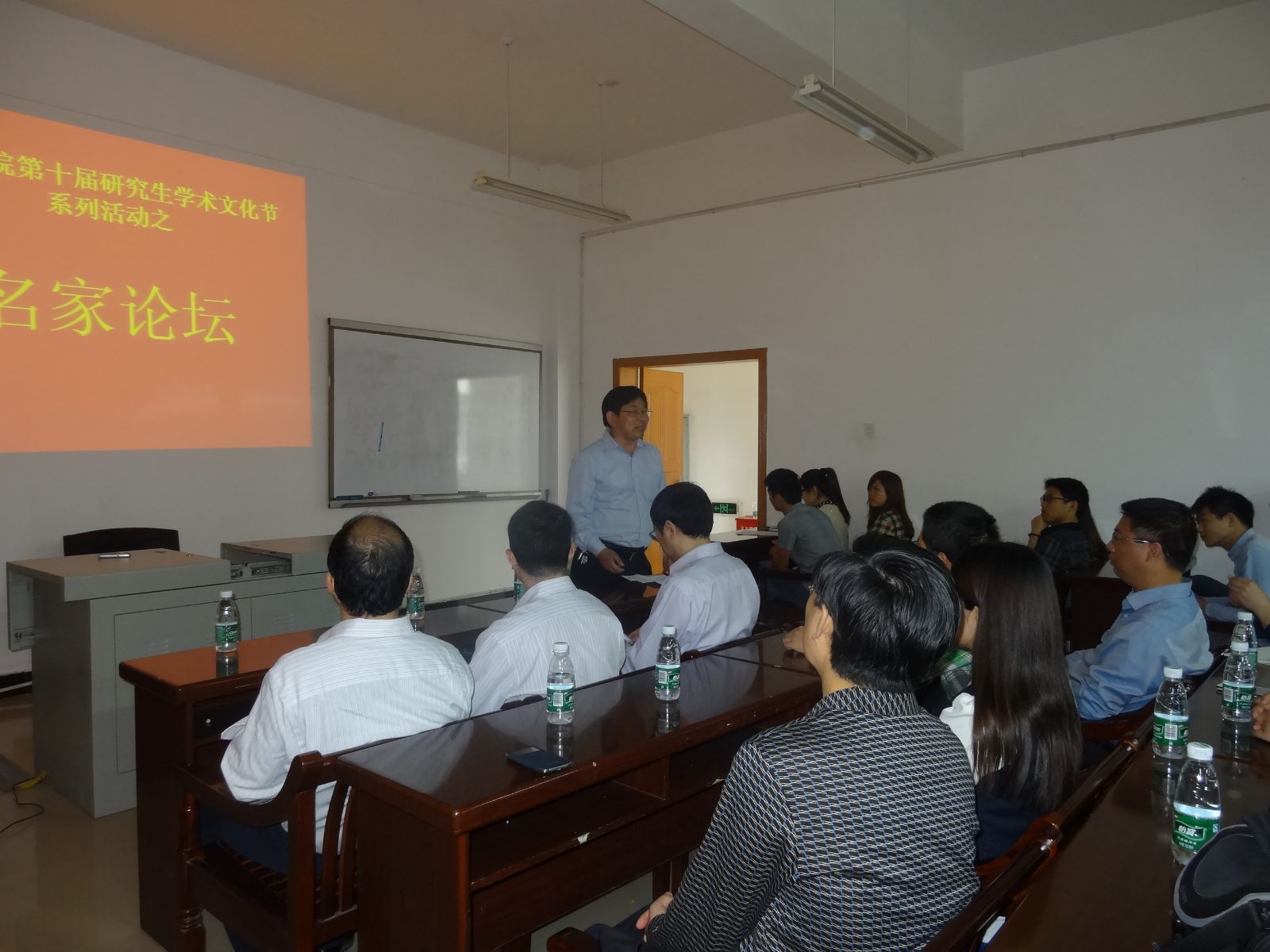 4月28日,在第十届研究生学术文化节开幕式后,武汉大学李振教授作首场学术报告。副校级督导员张海良教授主持学术报告。部分老师和研究生听取报告。