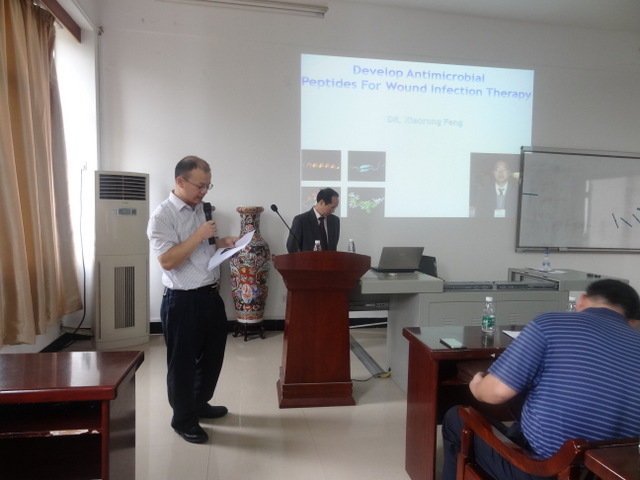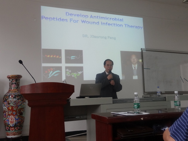 冯小荣教授就题为《开发抗菌肽作为伤口感染治疗的应对策略》做全面讲解,首先就什么是多肽引出话题,然后介绍了为什么要研究多肽,重点在于多肽作为临床类药物在一些诸如癌症等疾病方面的临床表现及展望,接着介绍了他们课题组对一种多肽结构的修饰并进行相关的表征和进行了临床测试,且取得了很好的效果。最后是师生提问环节,冯教授很能带动现场气氛,引导大家思考各种有趣的学术问题,最后也帮同学们解答了很多实验上和科研上的疑惑。