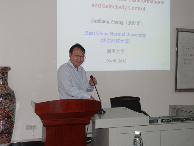 张俊良教授简介:2002年中科院上海有机所获博士学位,2003年至2005年德国科隆大学洪堡学者,2005-2006年美国芝加哥大学研究助理。2006年12月在华东师范大学化学系任教授、博导。2009年获得中国化学会青年化学奖,2014年获得国家杰出青年基金。主要研究方向为过渡金属催化的多官能化合物的选择性转化反应研究。