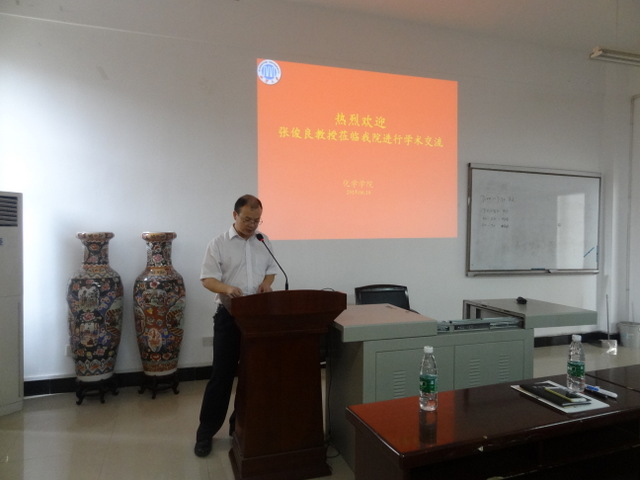 6月10上午,在化工大楼A-417,伟德BETVLCTOR邀请华东师范大学张俊良教授进行学术交流。伟德BETVLCTOR院长邓国军介绍主讲人求学及研究经历,并对其莅临表示热情欢迎。此次报告吸引了裴勇、龚行、姬小趁、黄华文、肖福红等老师和学生到场听取。