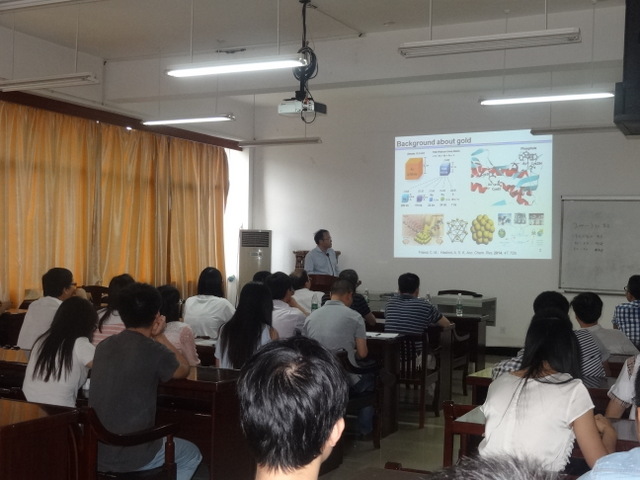 张俊良教授主要从以下三个方面进行学术切入:1、金催化的一系列环加成的选择性反应,2、O-H键插入反应,3、炔烃的氧化功能化反应。张教授给大家介绍了当前金催化的研究现状,分析了当今在这个领域所存在的难点与挑战以及金催化在有机合成中的优势。随后讲述了他们在新手性配体设计技巧、分子设计技巧等等科研当中高技术含量的工作。最后分享了他们课题组idea从设计到实施整个过程的经验与方法,教导大家如何合理运用自己知识攻克科研难点做出具有创新特色的学术成果。最后,邓国军院长、裴勇老师等就金催化的选择性反应提问,张教授一一都做了精彩回答。(照片由徐超提供)