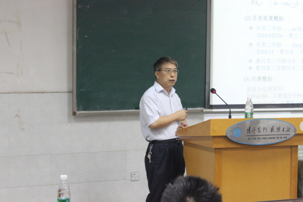 邓如生以《聚酰胺工业现状与发展》为题,围绕“聚酰胺概述、聚酰胺结构与性能的关系、聚酰胺的合成与改性、聚酰胺重点产品介绍及应用、聚酰胺的发展趋势”展开报告。邓如生高工结合自身从事聚酰胺多年的研究经验,详细地讲解了聚酰胺工业现状与发展情况。邓如生高工的报告使在座的老师和同学受益匪浅。报告后,邓如生与老师和同学进行了深入的学术交流,并详细地解答了在场老师和同学们所提出的每一个问题。