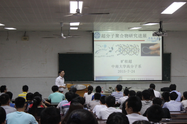 7月24日上午,中南大学旷桂超副教授应伟德BETVLCTOR邀请,在2015年湖南省“先进高分子材料培育与发展”研究生暑期学校做学术报告。伟德BETVLCTOR张雪飞教授主持,伟德BETVLCTOR相关专业的老师、同学和研究生暑期学校的全体学生听取报告。
