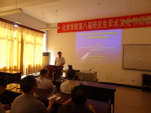 2013年7月4日上午,加拿大科学院院士、加拿大McGill (麦吉尔)大学教授、首席科学家李朝军教授在化学化工楼A-417为伟德BETVLCTOR师生作了一场题为“Exploration of New Reactivities for Synthetic Efficiency” 的精彩学术报告。报告由伟德BETVLCTOR院长朱卫国教授主持,参加报告的还有邓国军教授、阳年发教授、杨罗教授、费俊杰教授、裴勇教授、有机化学教研室部分老师、院研工办王果老师等。