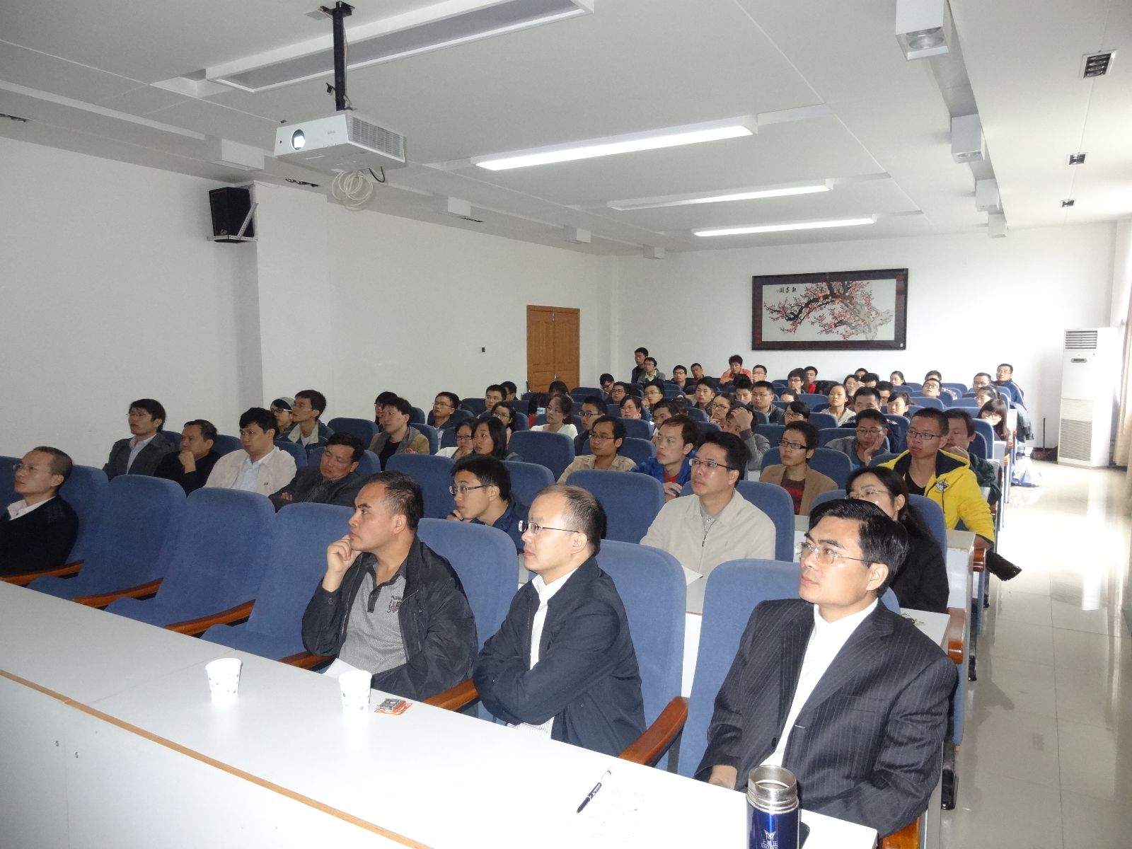 江教授分别就“绿色化学”、 “基于烯炔烃的合成方法学”、“超临界CO2”以及“新型催化材料的设计、制备及应用”等问题进行了深入细致的讲解,向在场的老师和同学介绍了相关领域的科研动态和科研经验,同时也跟同学们分享了自己的科研感受和乐趣。江教授认真细致地回答了在场老师及同学的提问,并且进行了详细的探讨。整场讲座中,江焕峰教授严谨细致的科研态度、谦虚勤勉的报告风格让在座的同学们受益匪浅、收获良多。