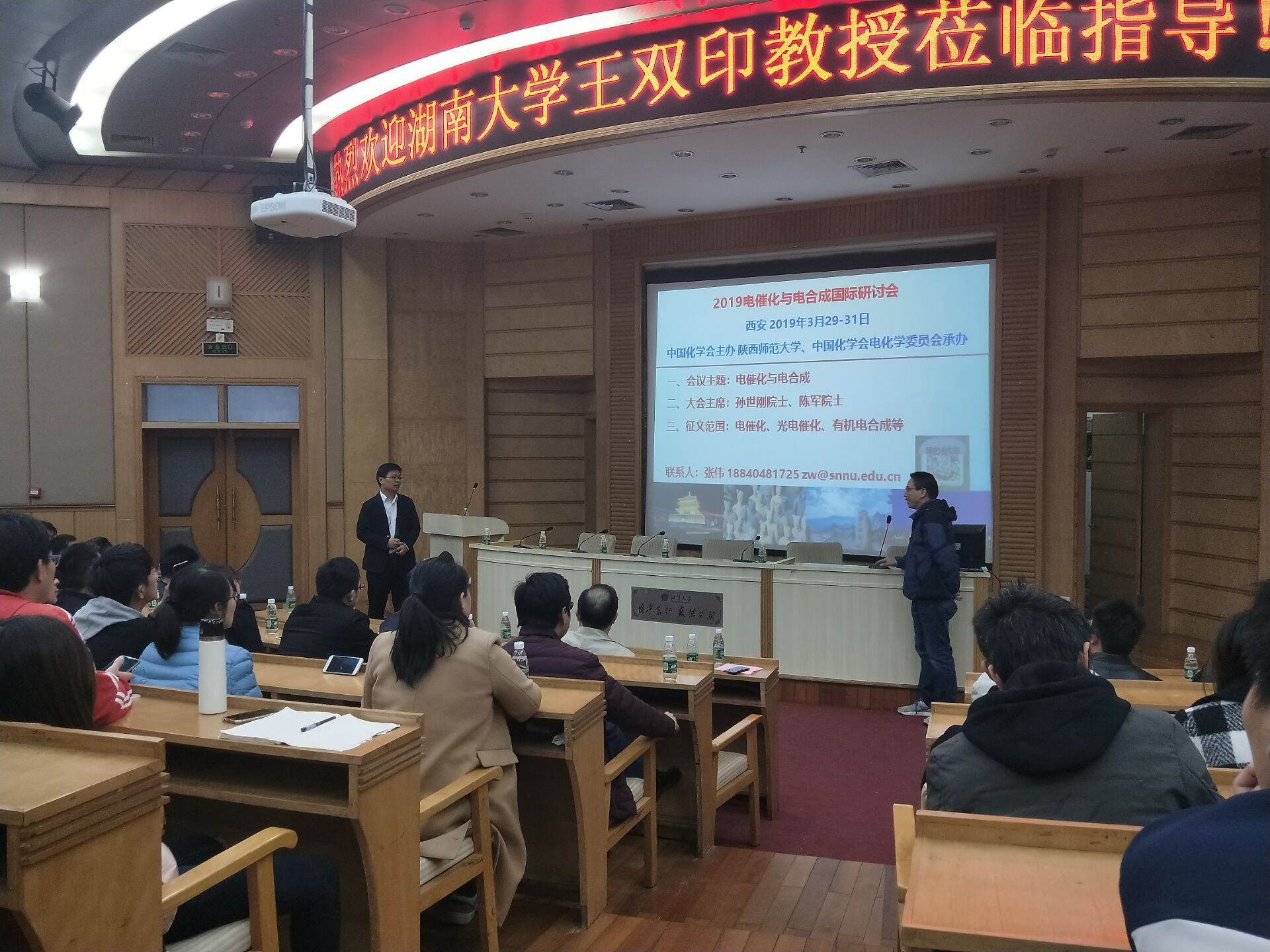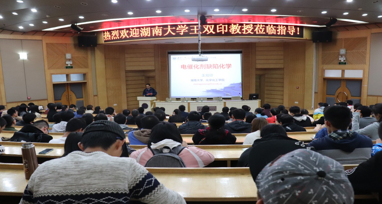 2018年11月11日下午,应杨秀康副教授与王先友教授共同邀请,湖南大学王双印教授来到我校进行学术交流,并以“电催化剂缺陷化学”为题作了一场令人收获丰厚的学术报告。报告由伟德BETVLCTOR化学院副院长裴勇教授主持,伟德BETVLCTOR师生积极参与。