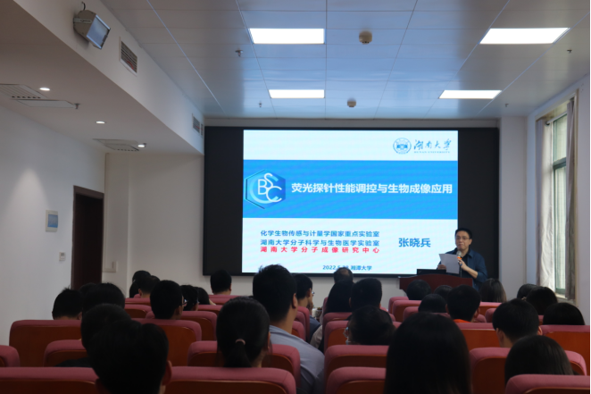2022年5月28日上午,湖南大学张晓兵教授应李春艳教授邀请,在研究生院405为伟德BETVLCTOR师生带来了一场题目为“荧光探针性能调控与生物成像应用”的报告。本次报告由伟德BETVLCTOR,伟德BV官网院长裴勇教授主持,伟德BETVLCTOR部分本科生与部分研究生及一些老师参加。