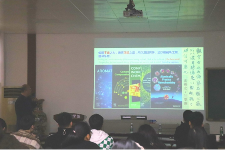本次交流孙忠明教授讲述了主族团簇化学关于14/15族(金属)元素化学及金属-金属键方面的研究,首先介绍了元素周期表的过渡金属,以主族金属团簇的研究背景和合成现状两个方面,介绍了目前激光溅射/气相合成方法为主涵盖绝大多数文献。以金属锗团簇为例,提到了团簇的合成实验与成键规则理论,并就主族团簇的合成新策略引发大家的创新思考,注重突破传统合成路线瓶颈,团簇的精准构筑及稳定化机制。最后孙教授以王羲之的一句“仰观宇宙之大,俯察团簇之盛,所以游目骋怀,足以极视听之娱,信可乐也”讲述了研究团簇的一种状态。