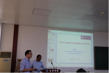 随后,余教授介绍了其课题组的主要研究工作,致力于高分子液晶、发光液晶、手性发光材料、室温磷光材料及配位化学等方向的研究。将聚集诱导发光( AIE )应用于液晶分子的设计,发展了液晶基元与发光基元分离的发光液晶设计与合成方法;将手性基团引入发光液晶,发展了兼具高发光量子效率和高不对称因子的圆偏振发光材料合成方法;通过构建基于手性发光液晶的FRET体系,发展了圆偏振荧光共振能量转移( C-FRET )新方法;将AIE基元引入有机配体,使发光液晶的研究拓展至有机无机配合物范畴。通过理解结构与性能之间的构效关系,为发光液晶的设计、合成、性能及应用研究提供理论与方法的指导。
