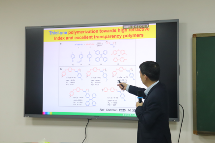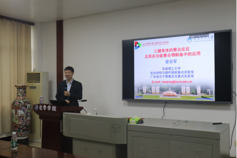 2024年4月10日,华南理工大学秦安军教授应邀至伟德BETVLCTOR进行交流,在化学大楼A417进行了题为“三键单体的聚合反应及其在功能聚合物制备中的应用”的学术报告。本次报告由伟德BETVLCTOR邓国军教授主持,伟德BETVLCTOR部分老师、研究生和本科生参加,会场座无虚席。