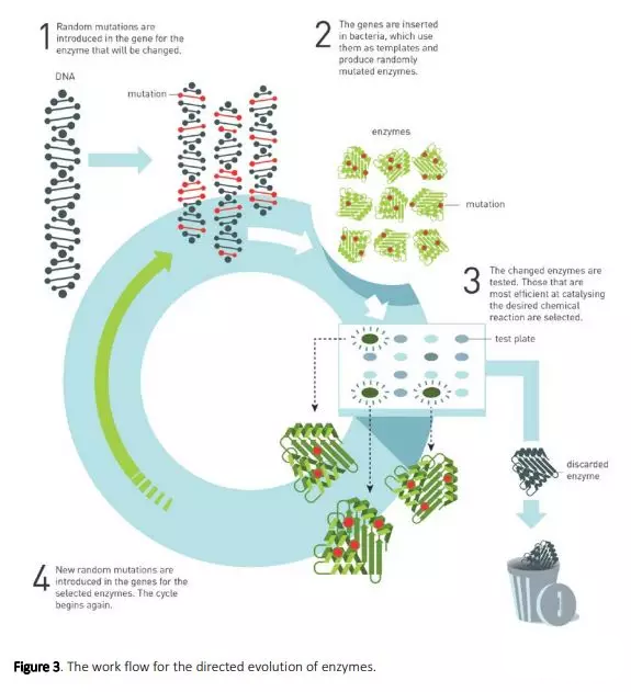 1985年,乔治史密斯开发了一种称为噬菌体展示的优雅方法,其中噬菌体(一种感染细菌的病毒)可用于进化新蛋白质。 Gregory Winter使用噬菌体展示进行抗体的定向进化,目的是生产新的药物。第一种基于这种方法的阿达木单抗于2002年获得批准,用于治疗类风湿性关节炎,牛皮癣和炎症性肠病。