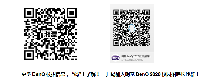 更多BenQ校招信息, “码”上了解! 扫码加入明基BenQ 2020校园招聘长沙群!
