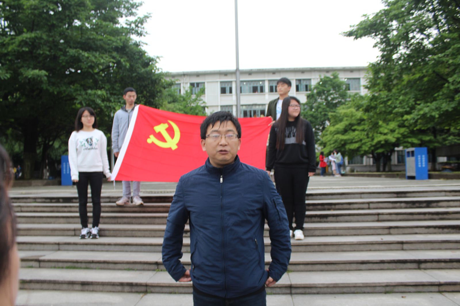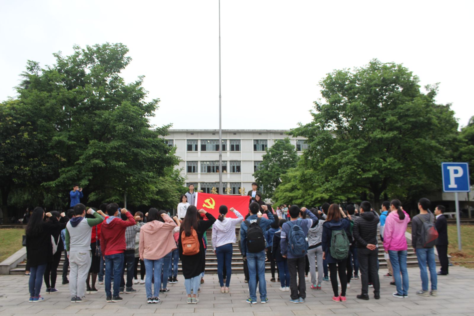 4月17日,一夜暴雨过后的早晨格外清爽,伟德BETVLCTOR预备党员与院学生会、团委干部近100人齐聚第一教学楼前,在参加升旗仪式后,预备党员宣誓入党。伟德BETVLCTOR党委书记刘稳丰、党委副书记肖妮、团委书记周计出席并参与本次活动。