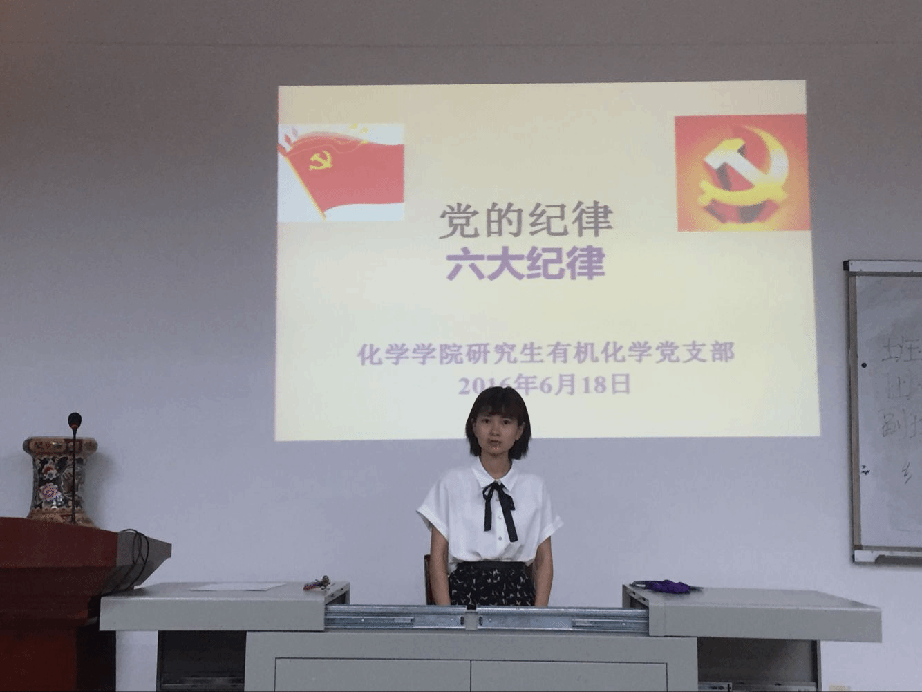 6月18日晚上,有机研究生党支部在化学化工大楼A-417召开党员会议,开展“讲规矩、有纪律”专题学习讨论。