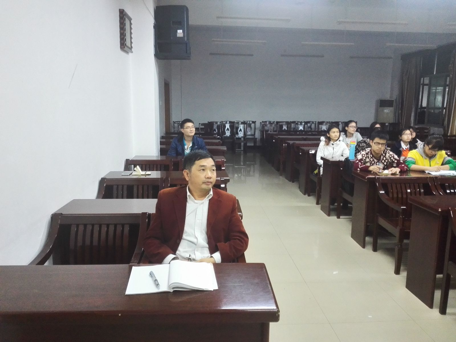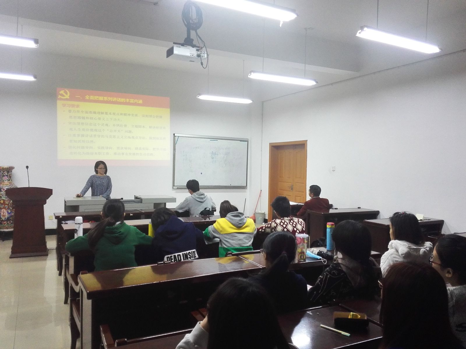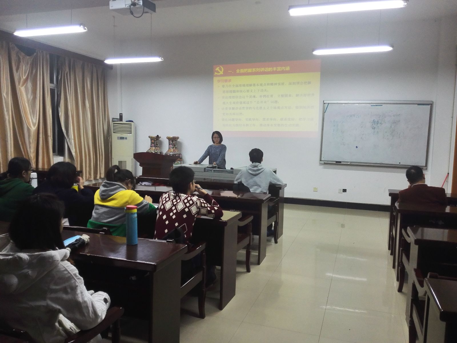 10月26日晚,在化学化工大楼A-417,高分子本科党支部书记郭艳君为该支部党员辅导学习习近平总书记系列讲话精神。院党委书记刘稳丰出席并指导。