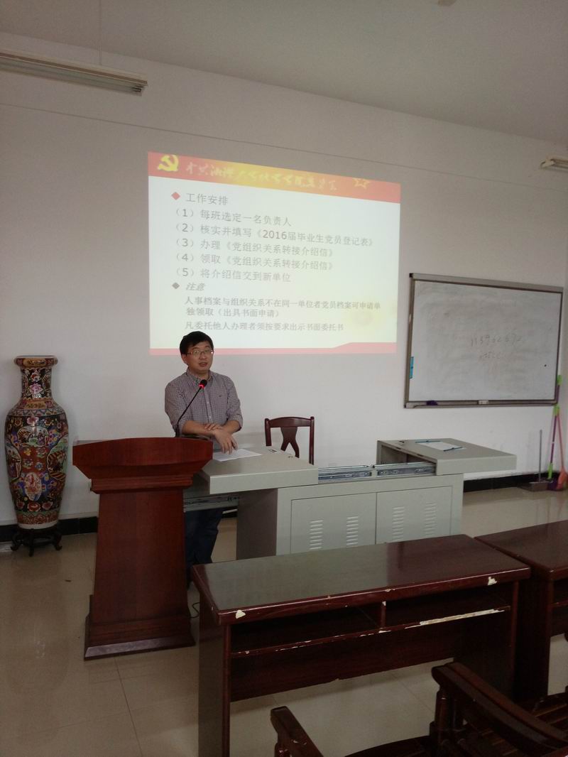 2016年5月18日上午,伟德BETVLCTOR在化学化工大楼A417召开毕业生党员大会,进行毕业生党员教育和毕业生党组织关系接转培训。学工办相关老师和全体毕业生党员出席。