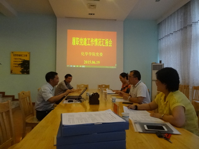 6月19日,学校党政办副主任谷立平、党委统战部副部长李琳、党政办副处级干部冯英到伟德BETVLCTOR检查核实党建工作情况,院党委书记刘稳丰、副书记卢其斌、办公室主任王果、团委书记周计参加汇报会。