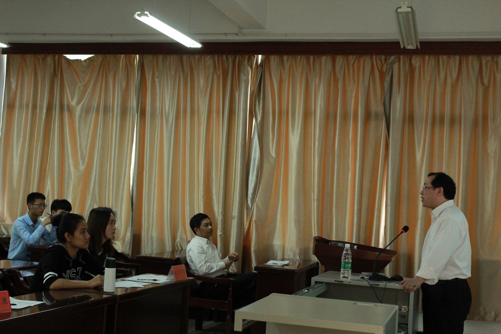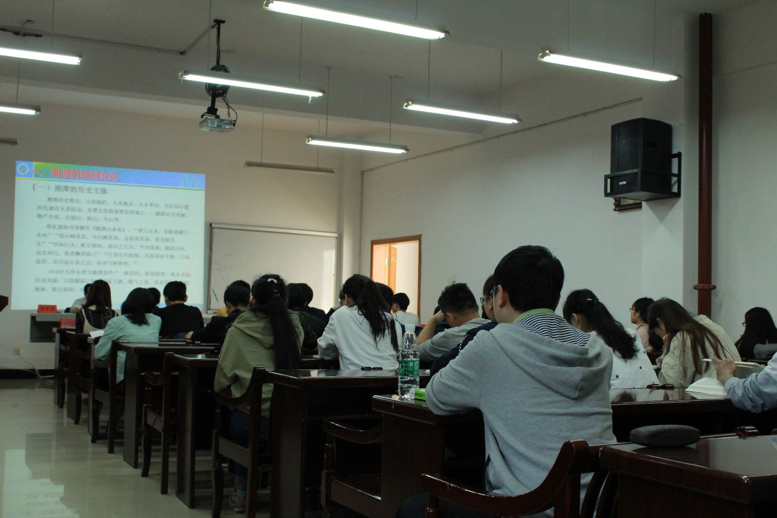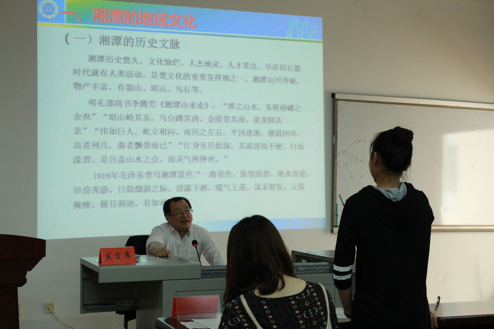 刘稳丰总结此次刘校长的授课是一次精彩的党课,也是一次精彩生动的历史课、文化素质课和励志课。同学们在课程中受益匪浅,对湖湘文化、对伟德BETVLCTOR有了更多的理解,在以后的学习与生活中也有了更高的追求。(照片由蒋琴提供)