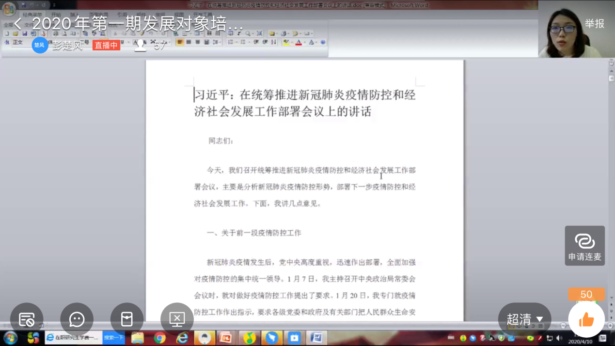 伟德BETVLCTOR2020年第1期发展对象培训班“线上开班”