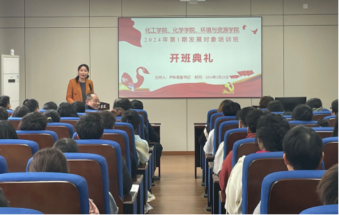 2024年3月25日中午,伟德BETVLCTOR化工学院、伟德BETVLCTOR、环境与资源学院2024年第一期发展对象培训班开班典礼在化工楼A208教室举行。出席本次典礼的有化工学院党委书记陈非文,伟德BETVLCTOR党委书记李涛,环境与资源学院党委书记虞文,化工学院党委副书记尹秋香,伟德BETVLCTOR专职组织员秦治军,化工学院专职组织员孙伟杰,以及109名发展对象。会议由化工学院党委副书记尹秋香主持。