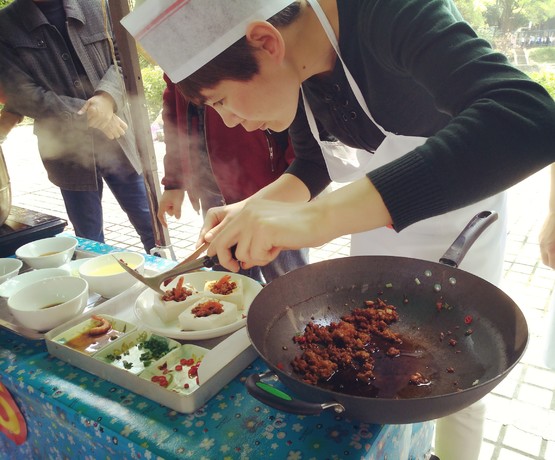 比赛中,参赛选手以饱满的精神风貌,展示了各自的精湛厨艺,所烹制菜品色、香、味俱全,博得了评委和观众的广泛称赞。每组短短10分钟的比赛,要完成一道精美的菜品实属不易——各参赛选手熟练地配菜、配料、下锅翻炒,秀出了自己的拿手绝技。