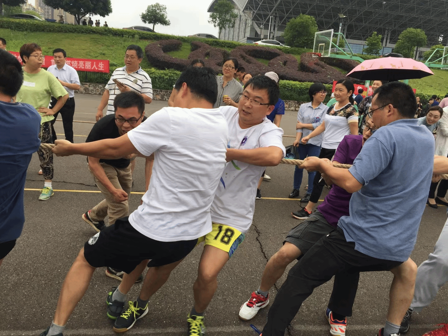随着裁判的哨声响起,比赛开始。阵阵呐喊声、欢呼声跌宕起伏,各位教师上场是运动员,运动员们站好弓箭步,咬紧了牙,涨红了脸,用力抓紧大麻绳使劲往后拉,使出浑身解数力争高下。各单位热情的拉拉队员们也卯足了劲儿,呐喊助威,偶遇势均力敌的参赛队进行拉锯战时,场上的气氛更是热烈。