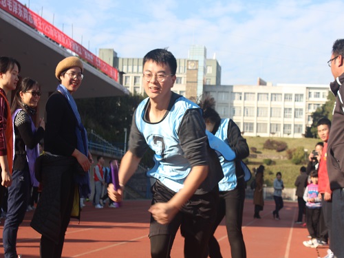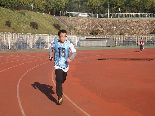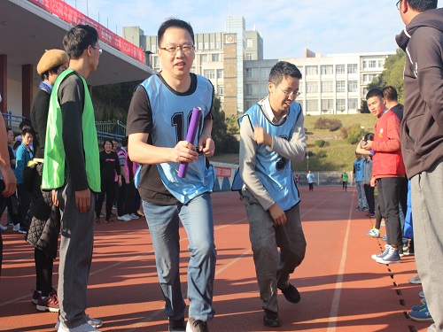 3点10分,随着一声枪响,第三组的比赛正式开始,彭圣明副院长一马当先,漂亮的跑完第一棒,以领先的姿态将接力棒交到了女将张小艳老师的手里。5位女老师奋力拼搏,进一步获得了超前的优势。其后,19位男将步伐矫健、斗志昂扬,无不展现出了伟德BETVLCTOR顽强拼搏、坚持不懈的精神风貌。张雪飞副院长接过最后一棒飞速奔跑时,我们已经平均领先其他分队将近一圈。在全体队员和啦啦队的欢呼声中,我们以33分12秒的成绩获得了小组第一的成绩。