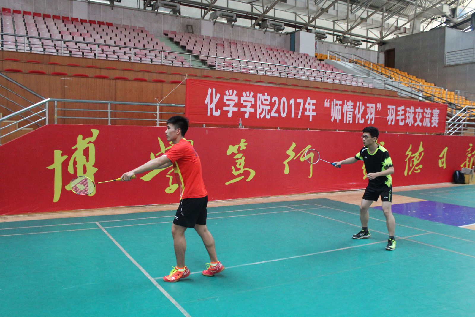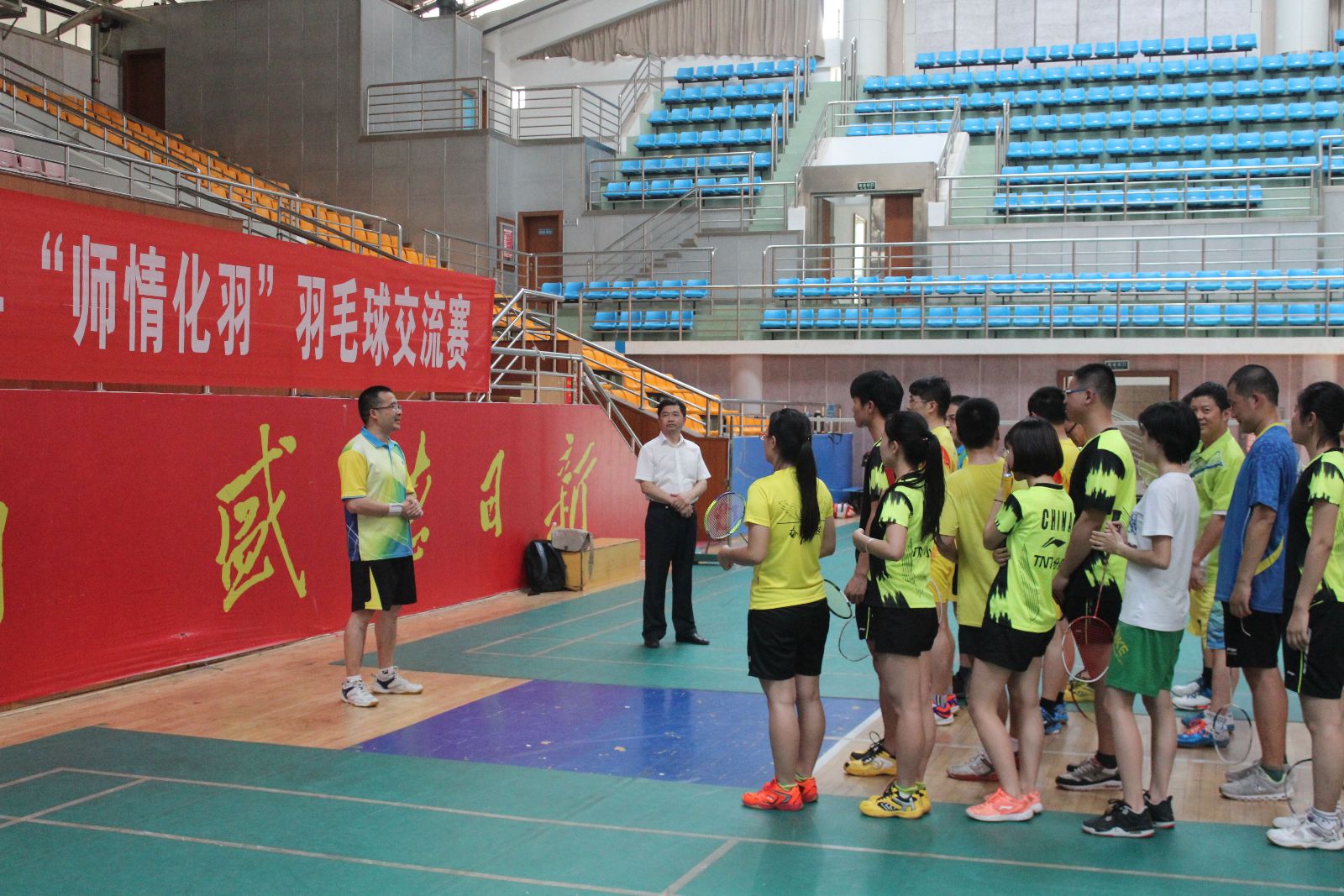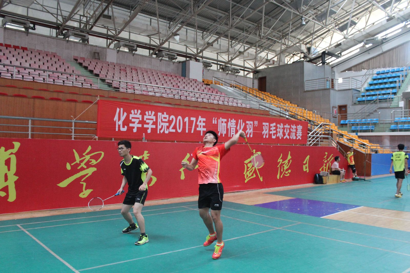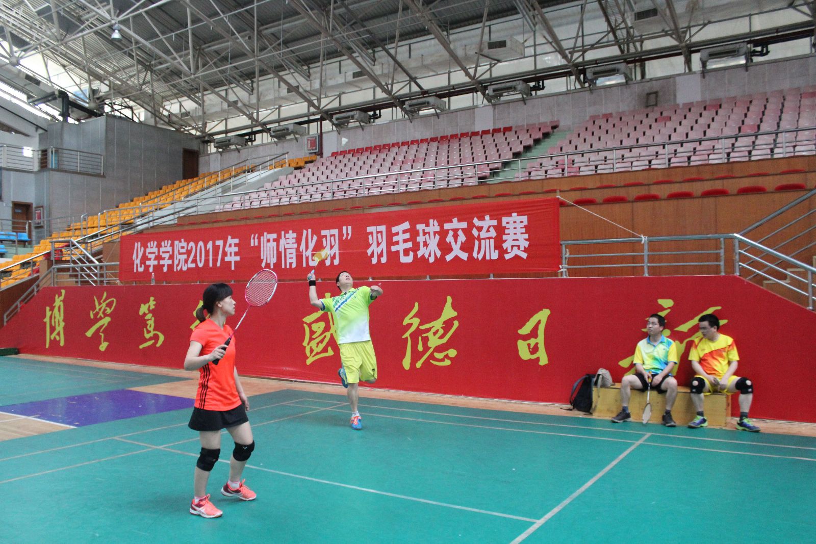 2017年5月14日下午,伟德BETVLCTOR2017 “师情化羽”羽毛球师生交流赛在学校体育馆举行。院分工会文体委员彭圣明主持开幕式,院分工会主席刘稳丰讲话,邓国军院长、张雪飞副院长、科技处费俊杰处长与伟德BETVLCTOR教职工、本科生和研究生羽毛球爱好者参加比赛。院分工会副主席雷钢铁担任比赛裁判长,伟德BETVLCTOR学生羽协的同学担任裁判。