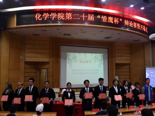 (学生会主席王赛洲为各位辩手颁发聘书)
