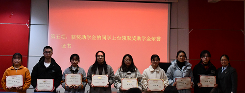在周春初副书记代表“展辰新材”奖助学金评审委员会宣读完毕《“展辰新材”奖助学金评审委员会2020年度工作报告》之后,各位嘉宾为获奖学生颁奖,邓国军院长代表学院发言对展辰集团表示诚挚感谢。