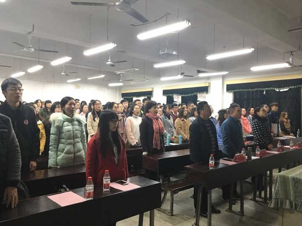 结业典礼由环境与资源学院党委副书记吴峻老师主持。典礼开始,全体起立奏唱国歌。吴峻老师致辞,强调了要树立正确的人生观,世界观,价值观,认真学习贯彻党的十九大精神。
