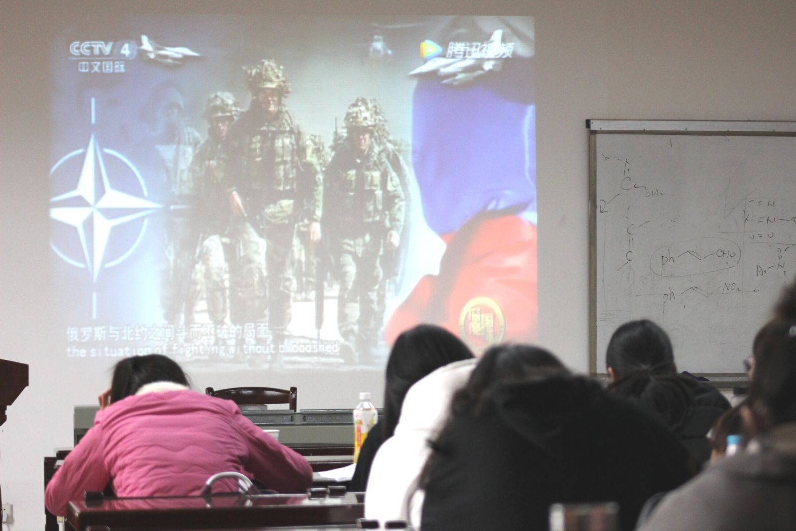 开班典礼后,秦老师组织全体预备党员观看深度国际专题视频。