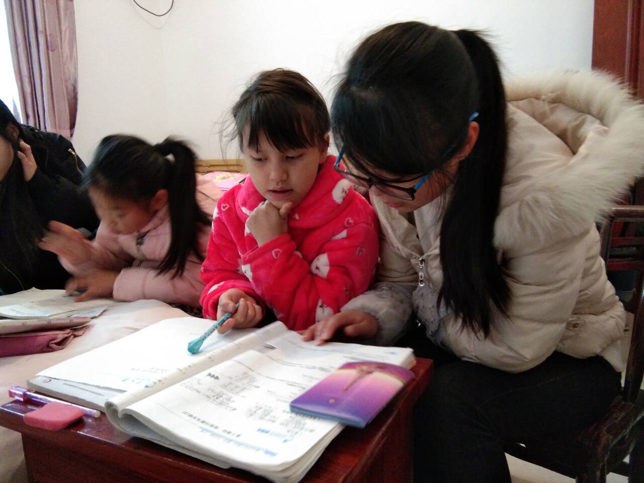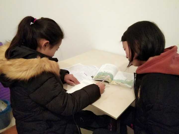 (志愿者教小朋友做功课)