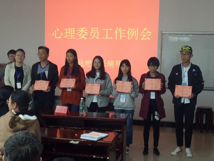 在例会中,肖妮老师为我们讲述了大学生心理健康的重要性及对伟德BETVLCTOR心理工作的展望,她嘱咐心理委员一定要认真观察并记录各班同学的心理健康情况,有特殊情况要及时向老师反映。紧接着段红杰老师为各班心理委员讲解心理委员的重要性及工作要求,并介绍如何顺利在本班开展工作的技巧。同时,此次例会上两位老师对化心驿站第三届成员颁发了聘书并合影留念。随后化心驿站组长雷轩灏对心理委员工作的一些注意事项进行了发言,强调心理工作的开展一定要保密。例会最后,化心驿站主任孙朝朝进一步详细地说明了心理委员工作的要求,并希望心理委员能多与化心驿站交流,积极配合工作。