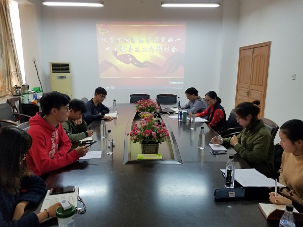 10月24日下午,伟德BETVLCTOR党委副书记肖妮老师、团委书记周计老师和团委学生会主席团全体成员在化学化工大楼A415召开学习党的十九大报告工作研讨会。