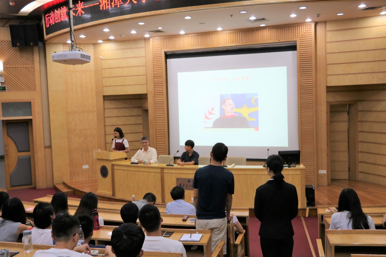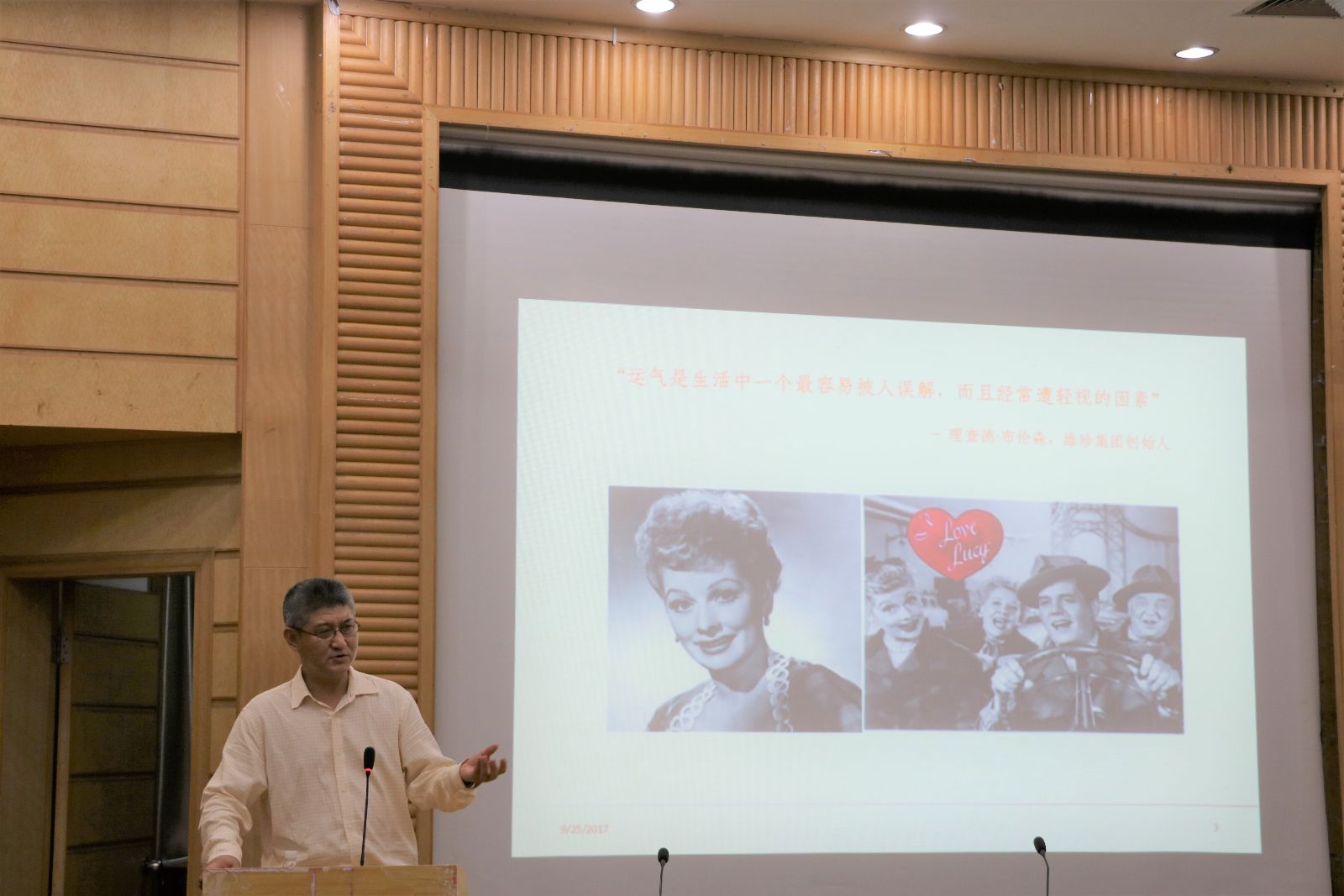 吴兵博士本次讲座的主题是“拐点---如何成就你的精彩”,他先后从“喜欢”“艰难选择”和“保持饥饿,保持愚蠢”三个方面结合实例为同学们讲述了成功的定义、成功的方法等内容。随后的提问环节,现场的同学们十分积极踊跃,吴博士耐心解答了大家关于成功的问题和困惑。
