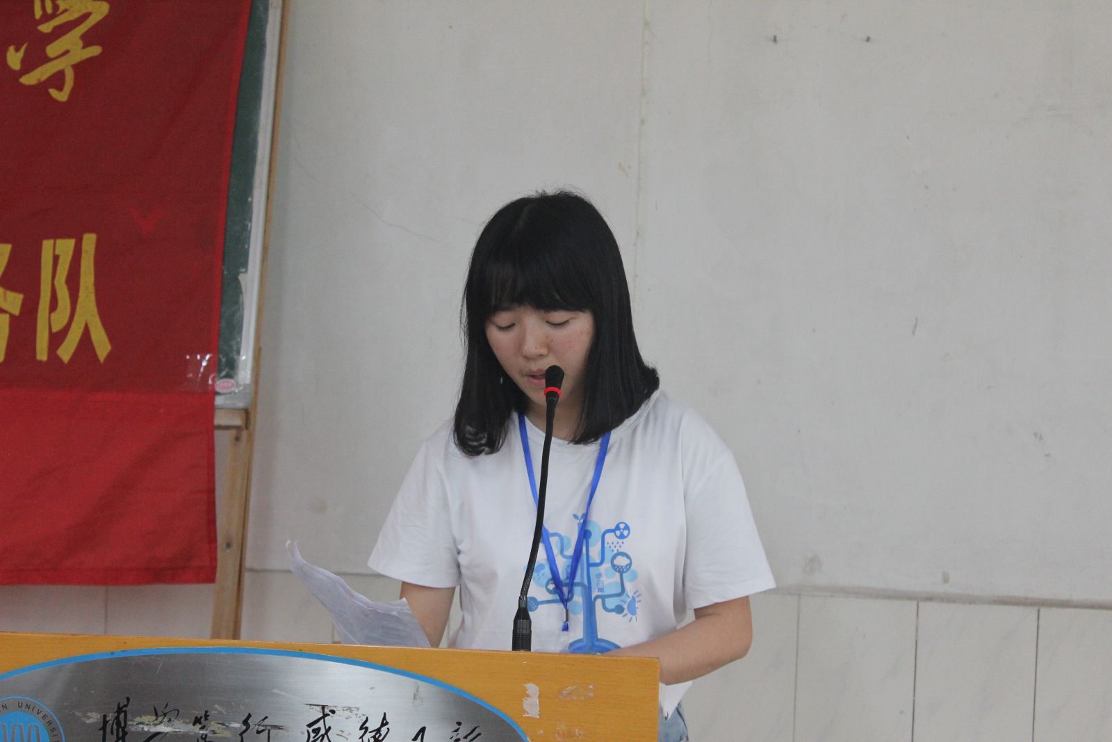颁奖后,青志队队长李婧对一年的青志工作进行总结,从阳光支教“一帮一”到去养老院看望老人等,老人们欣慰的笑容、孩子们不舍的面容就是对青志服务最好的认可。