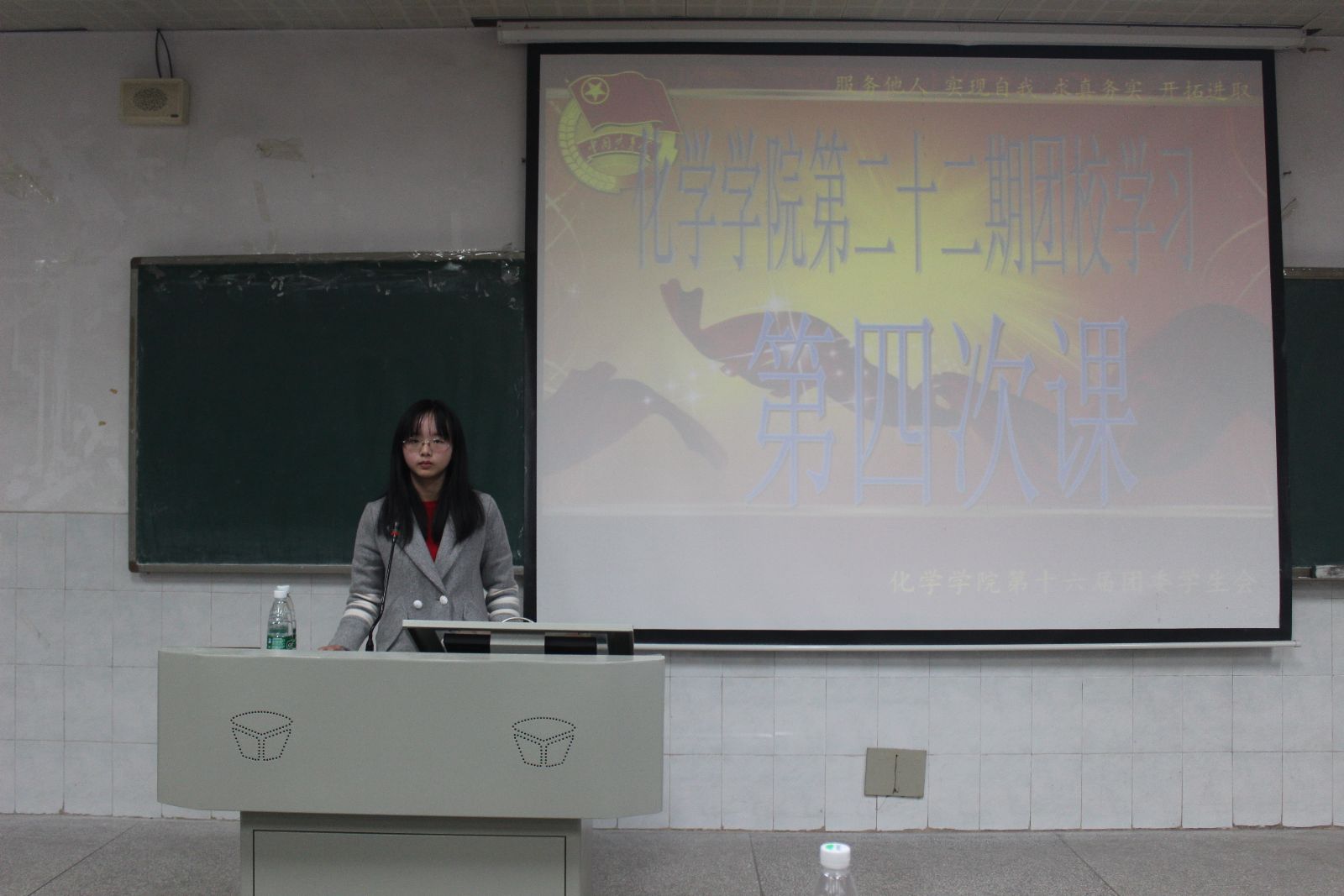 在主持人宣布此次团校课开始后,周计老师从容地走上了讲台,开始讲课。