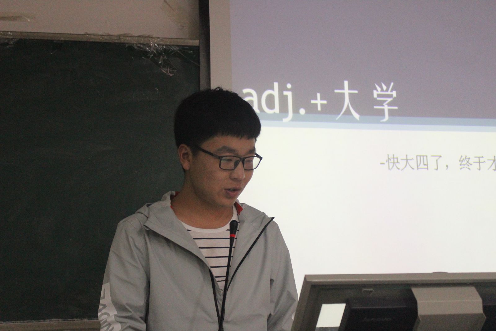 最后学生会副主席晋英斌学长以一句"永远年轻,永远热泪盈眶。"谈了如何规划自己大学四年的时间,不要碌碌无为荒芜了大学四年。(照片由林文淮提供)