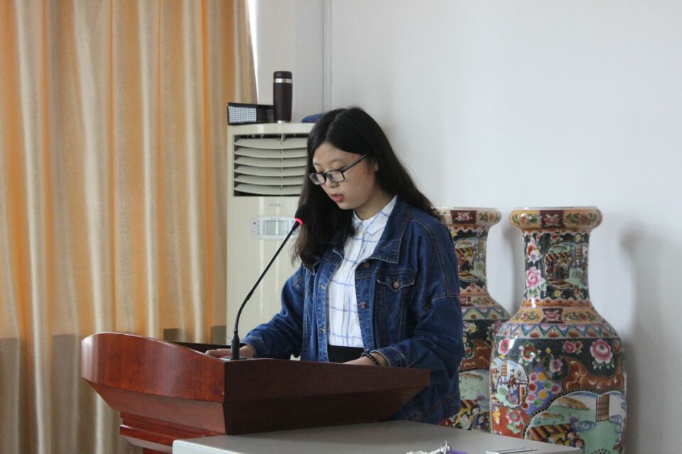 在主持人进行一些简要介绍之后,首先学生会主席赵婧秀发言,她向大家传达了宣传工作的重要性,也希望每个同学能够利用好这些机会,好好学习新闻报道方面的知识,学以致用。
