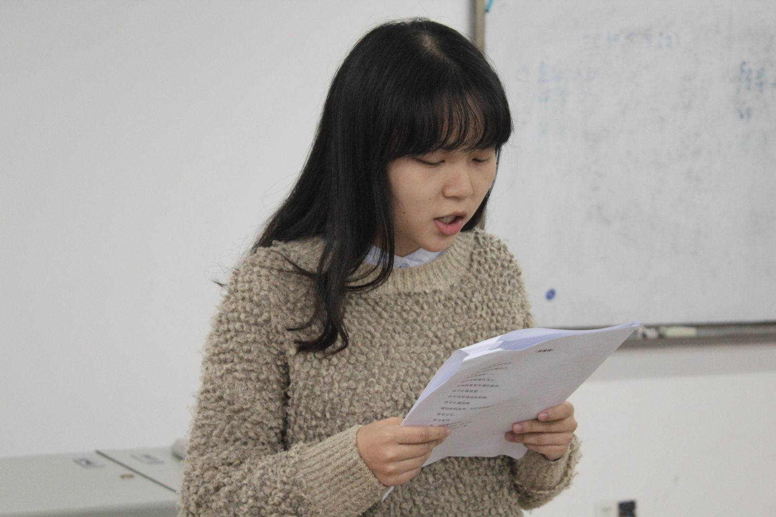 本次比赛分为初试和复试两个阶段。上午为初试,首先由主持人宣布比赛开始并介绍比赛规则,每名参赛选手依次上场,从所提供的诗歌中自选一段朗诵,时间不超过一分钟。在这短短的展示时间里,参赛选手们表现出他们特有的风采。诵读声亦或哀婉低沉,亦或慷慨激昂。经过一番深情演绎,激烈角逐,四位评委根据每位选手的个人表现,进行评审,选出表现优异者进入复试。下午复试时,选手们四人为一组,合作朗读一篇文章,评委们综合每位选手的诵读能力,团队合作能力等,最终确定十二名同学代表伟德BETVLCTOR参加伟德BETVLCTOR中华经典诵读比赛。(照片由仇梦依提供)
