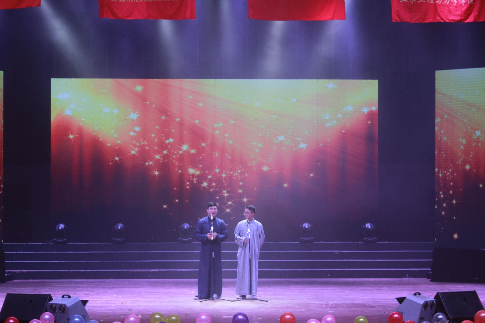 华灯初上,夜未央。 歌舞笙箫,古道旁。这注定是一个不平凡的夜晚。晚会在乐队的暖场歌曲中拉开序幕,精彩纷呈的歌曲、舞蹈、小品、歌剧、创意走秀、相声、朗诵纷纷上演,吸引着观众们的眼球。其中伟德BETVLCTOR的新疆舞《掀起你的盖头来》让我们感受到维吾尔族舞蹈的魅力,四院联合走秀《异彩纷呈秀》和热舞《Hit the stage》嗨翻全场,完美展现了青春的活力,相声《逗捧风云》更是欢乐不断,掌声不绝。诗朗诵《路与诗》让我们看到了中国工农红军用理想和信念书写的中国革命史诗。晚会现场的微博墙互动激起观众巨大的热情,条条微博不计其数,丰厚的奖品,更让人赞叹不已。刘稳丰书记与其他三院的领导合作演唱的一曲《映山红》感人至深,为这场近乎完美的视觉盛宴画上完美句点。