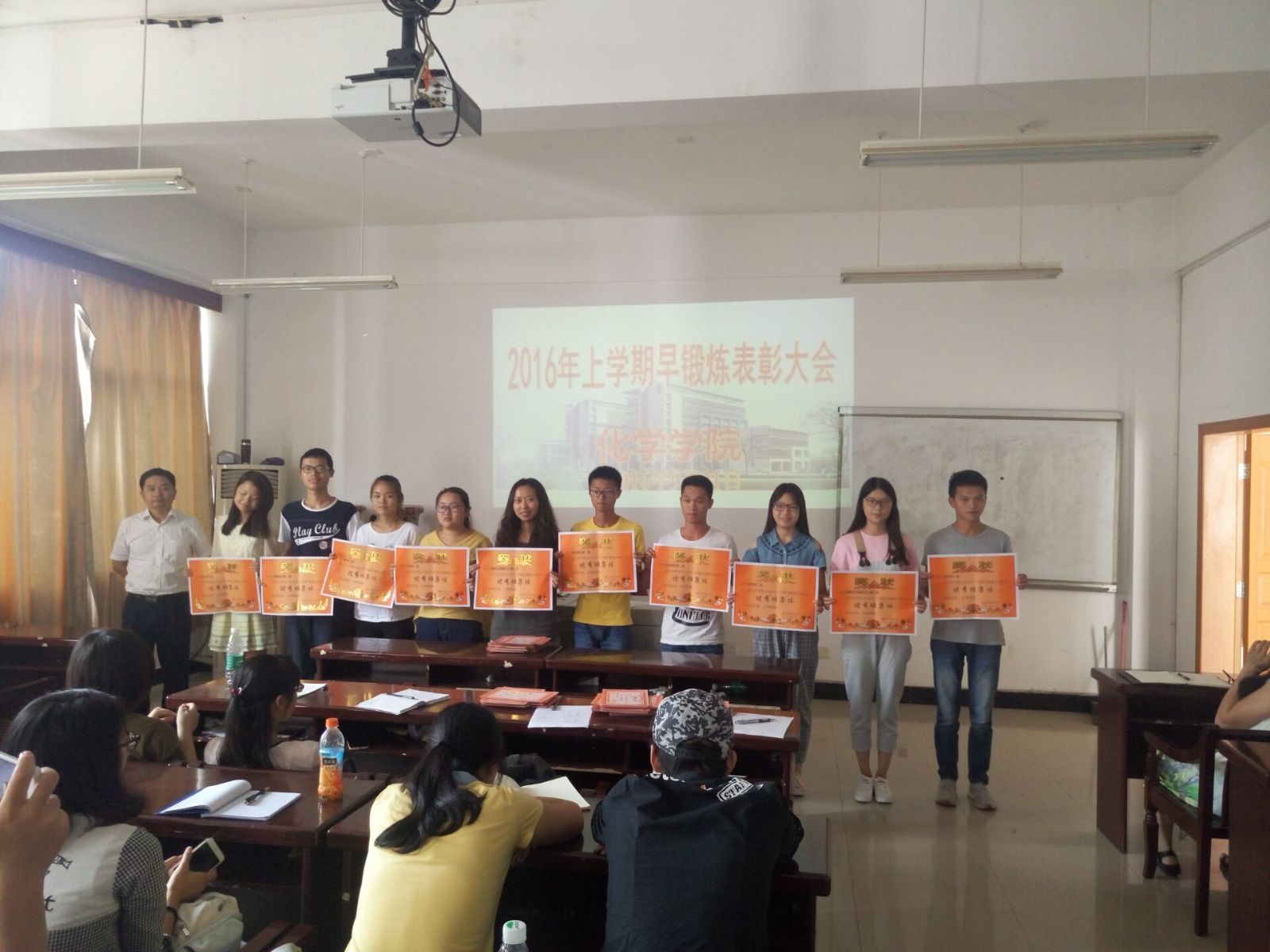 2016年9月21日中午12:30,伟德BETVLCTOR学工办召开2016年上学期早锻炼优秀个人和集体表彰会,院党委书记刘稳丰出席。会议首先宣读了《关于表彰2016年上学期早锻炼优秀集体和个人的决定》, 2014级化学2班等10个班级被评为“早锻炼优秀班集体”,蔡飞雄等410名同学获“早锻炼优秀个人”荣誉,程珊珊等28名同学获“早锻炼优秀考勤员”荣誉。刘稳丰为获奖集体颁发奖状并讲话,他指出,早锻炼是学院学生工作的一项重要工作和特色工作,不仅有利于推进学风建设和身体锻炼的积极性,更有利于培养同学们的上进心和意志品质。他要求各班班长、团支书积极发动,认真组织,完成各项工作。