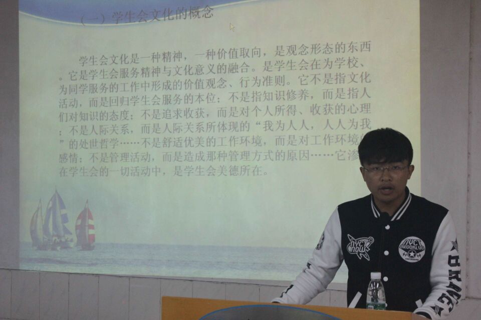 11月1号上午九点,伟德BETVLCTOR干部干事培训大会在法附楼102顺利举行。出席本次大会的嘉宾有伟德BETVLCTOR团委书记周计老师,主席团全体成员。参加本次会议的还有全体学生会成员。